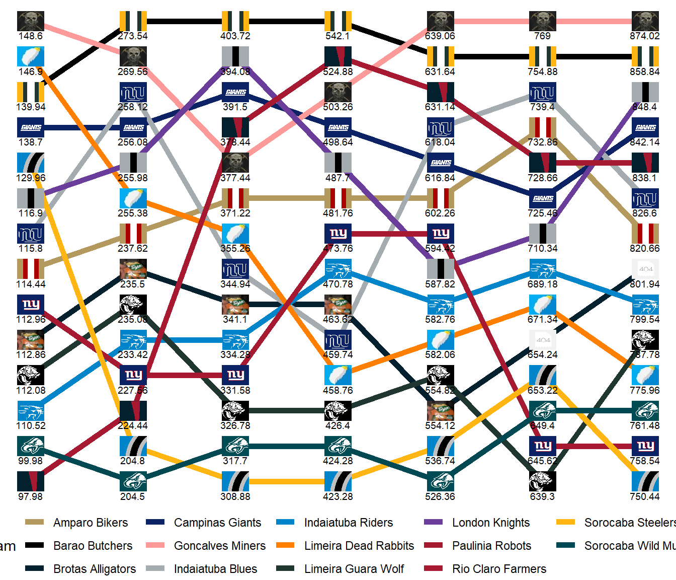 | 14 | 0 | Indaiatuba Riders | 2-5-0 | 799.54 | 835.64 |