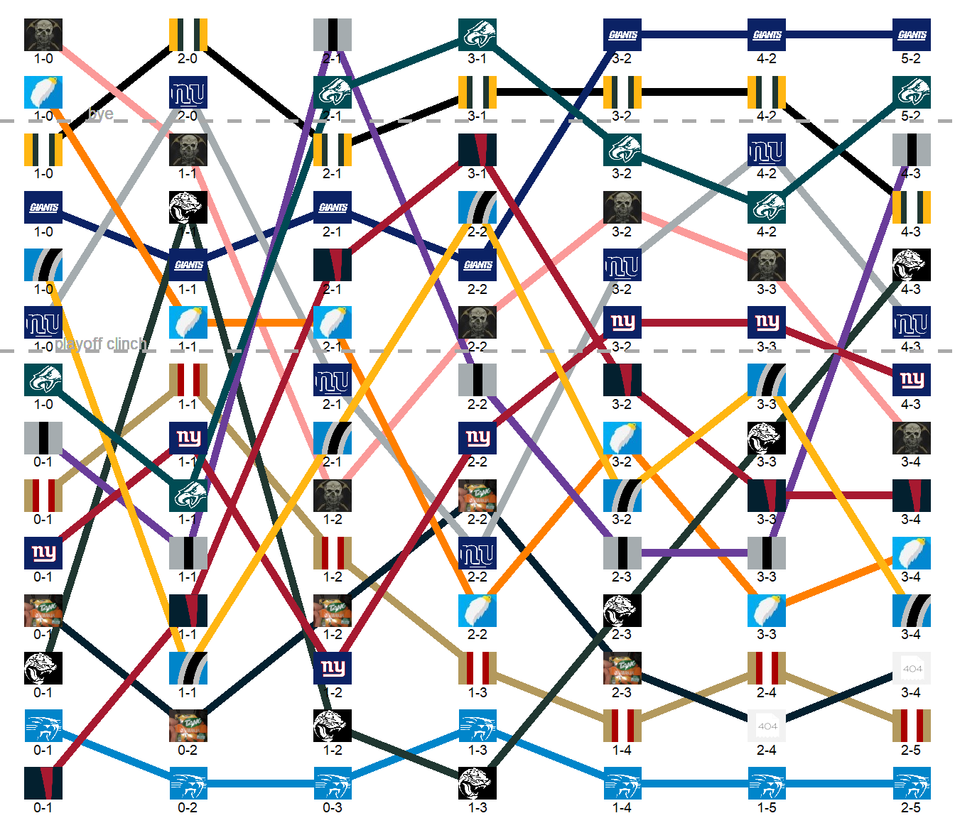 Brotas Alligators | 3-4-0 | 802.14 | 797.14 |