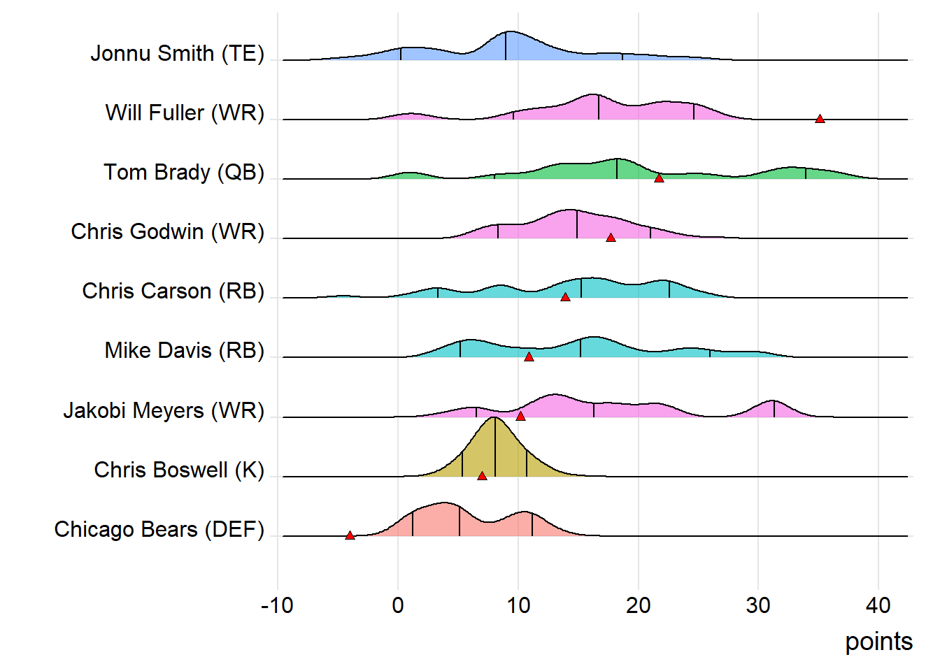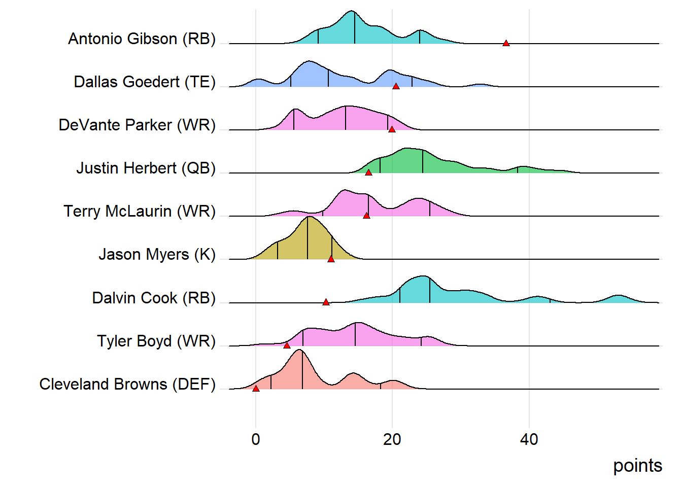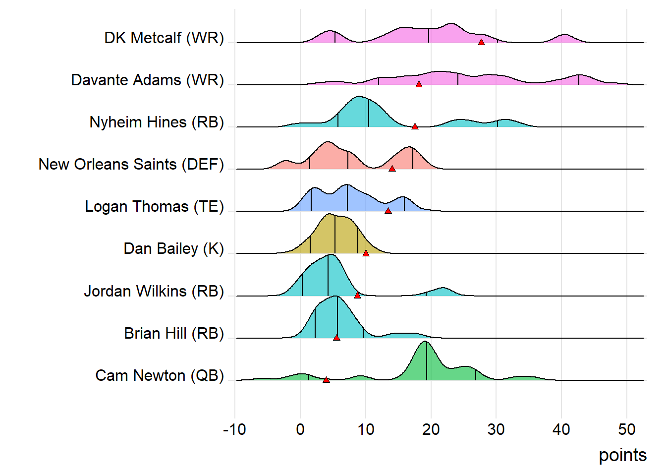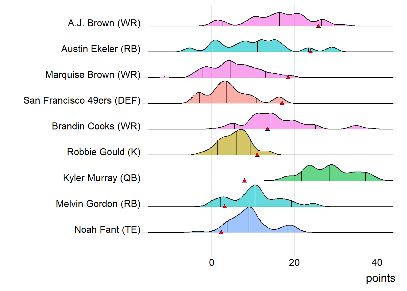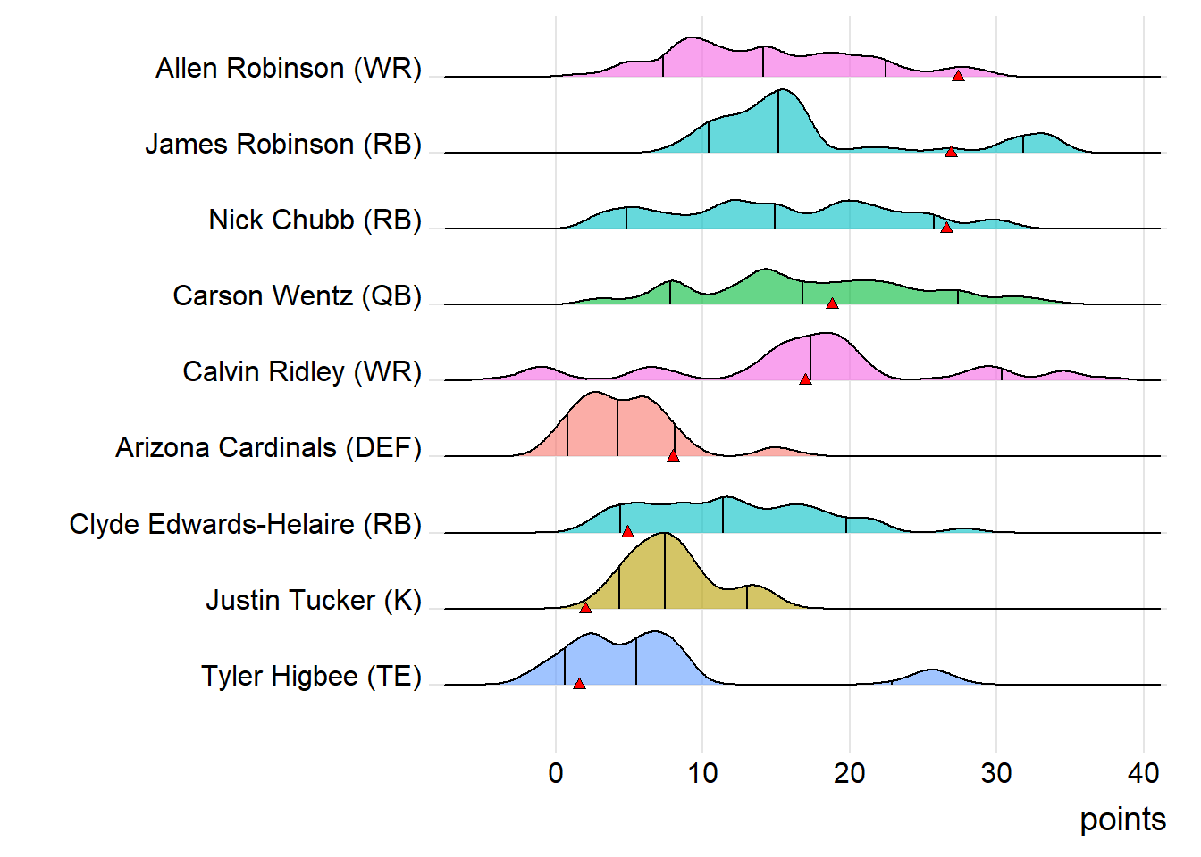 Since Robinson was the top point-getter for London Knights, it means a different player has led the team in each of the last four weeks. With 15.90 points, James Robinson paced the squad in Week 9, while Malcolm Brown (19.10 points) was tops in Week 10 and Clyde Edwards-Helaire (20.70 points) last week.
