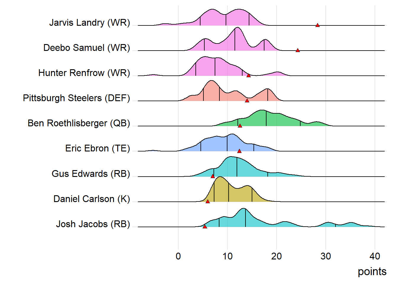 Since Landry was the high scorer for Sorocaba Steelers, it means that a different player has now led the team in each of the past six weeks. With 18.80 points, Tee Higgins paced the squad in Week 7, while Julio Jones (20.70 points) was team-leader in Week 8 and Jerry Jeudy (25.50 points) led the way in Week 9. Josh Jacobs (29.60 points) was tops in Week 10 and the Steelers Defense (17.00 points) led last week.