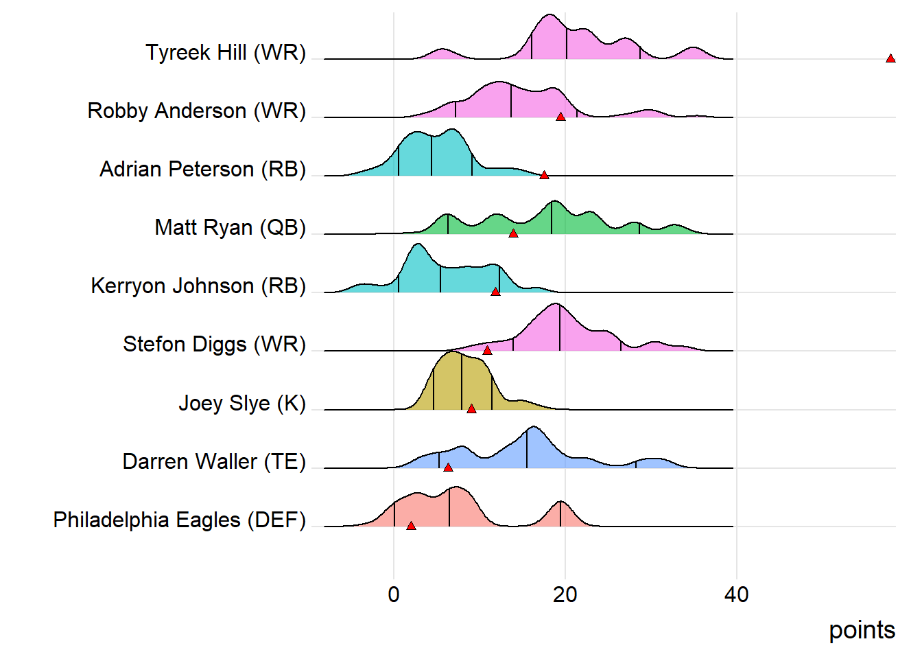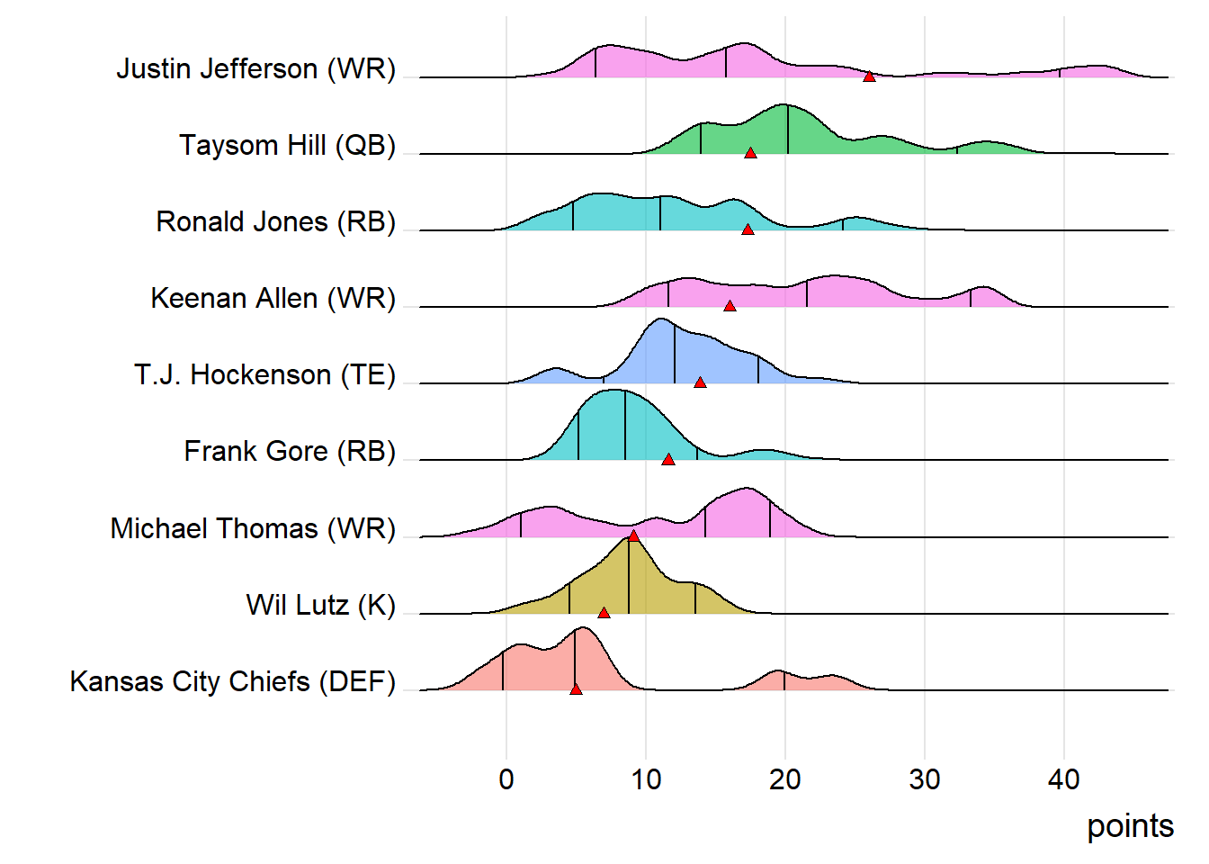 Since Hill was the top point-getter for Goncalves Miners, it means a different player has led the team in each of the last four weeks. With 20.80 points, Stefon Diggs paced the squad in Week 9, while D’Andre Swift (25.90 points) was tops in Week 10 and Adam Thielen (32.30 points) last week.