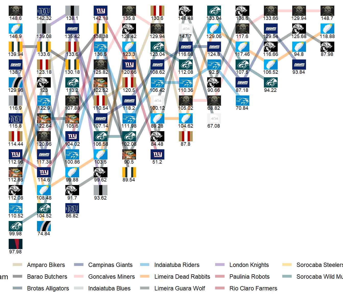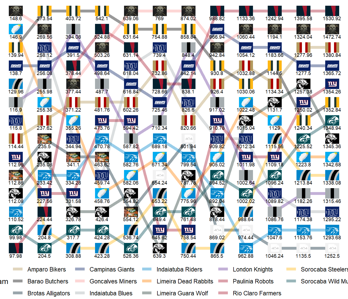 Limeira Dead Rabbits | 7-5-0 | 1342.68 | 1278.10 |