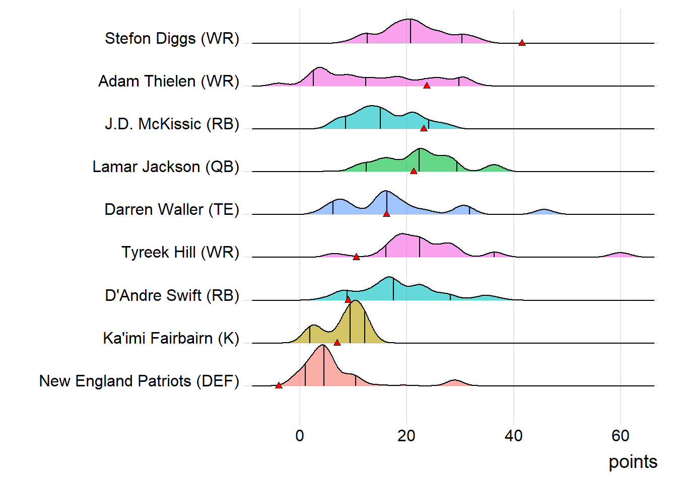 On Goncalves Miners, the New England Patriots DEF wasn’t just the one D to post a negative score; they represented the lone fantasy starter throughout the entire league in the red.
